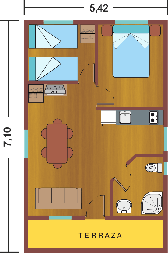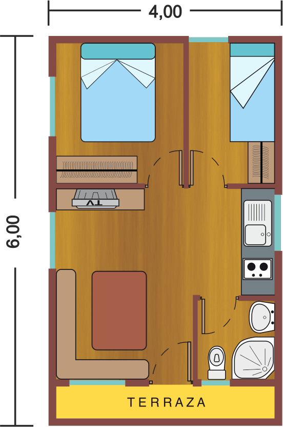 Los bungalows están diseñados para una capacidad máxima de 4 personas.